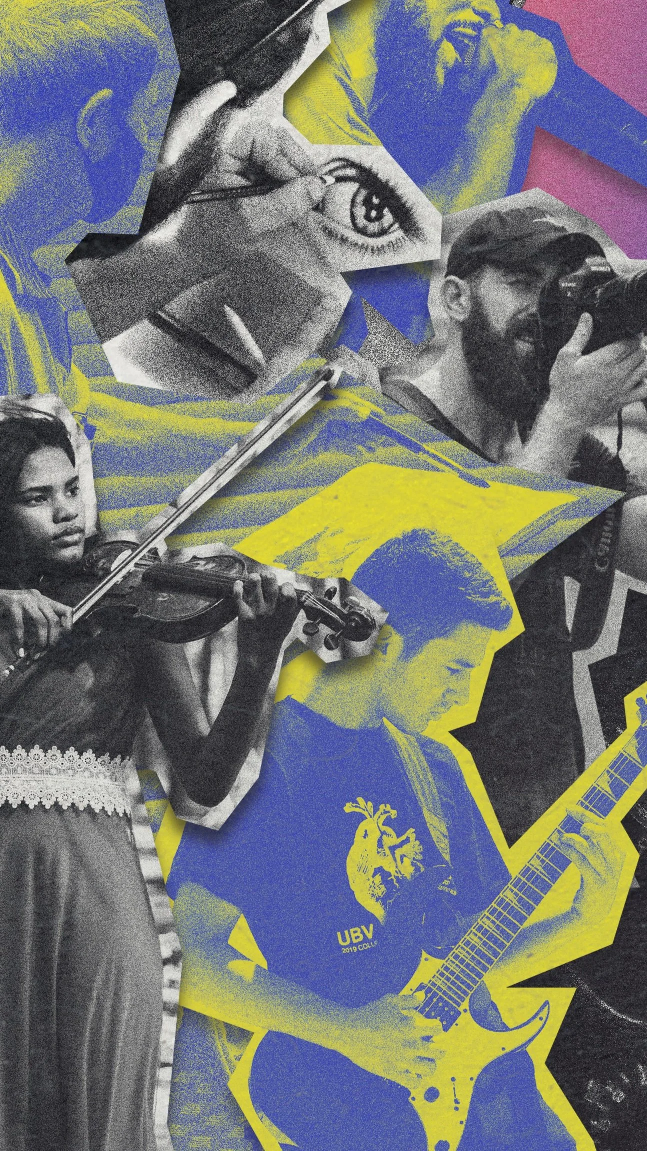 My school requested a poster be made for their annual Festival of the Arts, where the most fitting poster would be selected and used to promote the event. Two student ended up being picked, one of them being my classmate Cassie, and the other being me. For the poster I wanted it to be live and vibrant while advertising the varietyof talent we were looking for. I didn't want it to lean to heavily in depicting either musicians or artist, so I did a balance of depicting traditional arts with different musicians. I also included someone on a skateboard to convey energy, and a photographer. The colors are bold to be energetic and grab someone's attention.